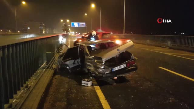 Otomobil Korkuluklara Çarptı: 1 Yaralı