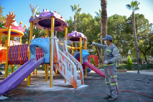 Kumluca’da Çocuk Oyun Grupları Dezenfekte Ediliyor